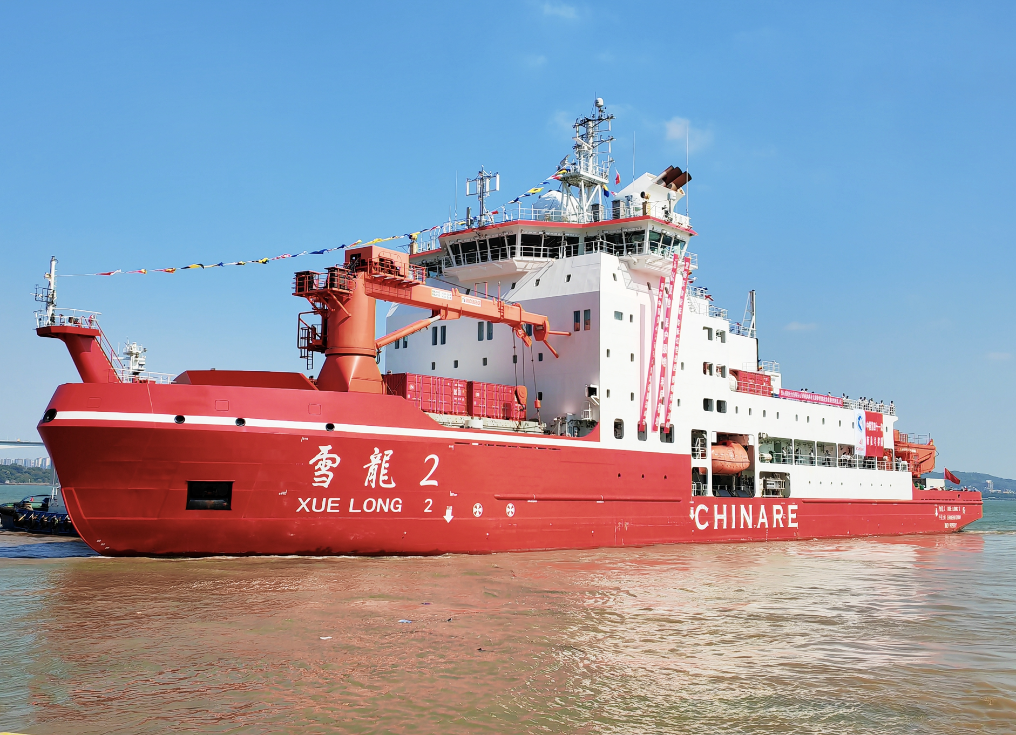 11月1日,中国第41次南极考察队出征,这是当天起航仪式上拍摄的“雪龙2”号。记者 王聿昊 摄